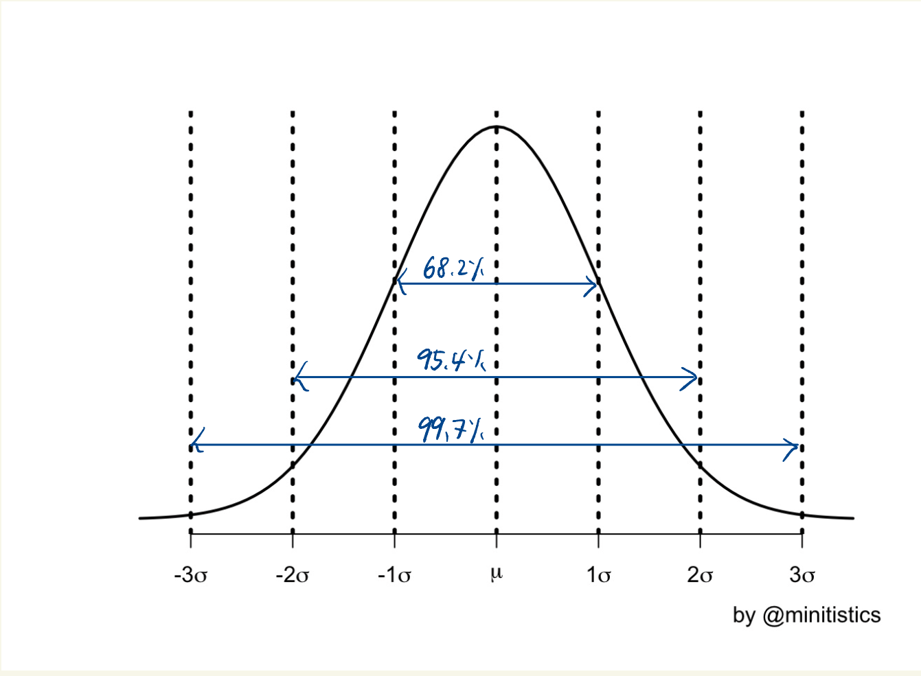 - 데이터 값이 99%의 확률로 평균±3*표준편차의 범위 내에 존재한다. 즉, 99%의 값이 평균에서 3 표준 편차 내에 있다.