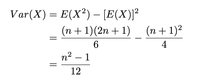 평균은 균일 분포의 간격 a와 b의 중간값을 구하는 개념이고, 분산은 E(X^2)-[E(X)]^2을 사용하여 구하면 다음과 같습니다.