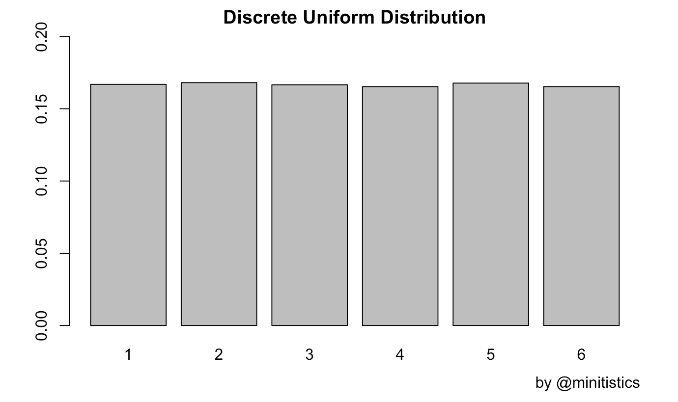 발생할 가능성이 동일한 이산형 균일 분포의 대표적인 예로는, 동전을 던졌을 때 앞/뒤가 나오는 경우, 혹은 주사위를 던졌을 때 일정 숫자가 나오는 경우입니다.