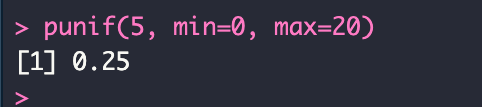 R에서 punif 함수를 이용하면 다음과 같습니다.