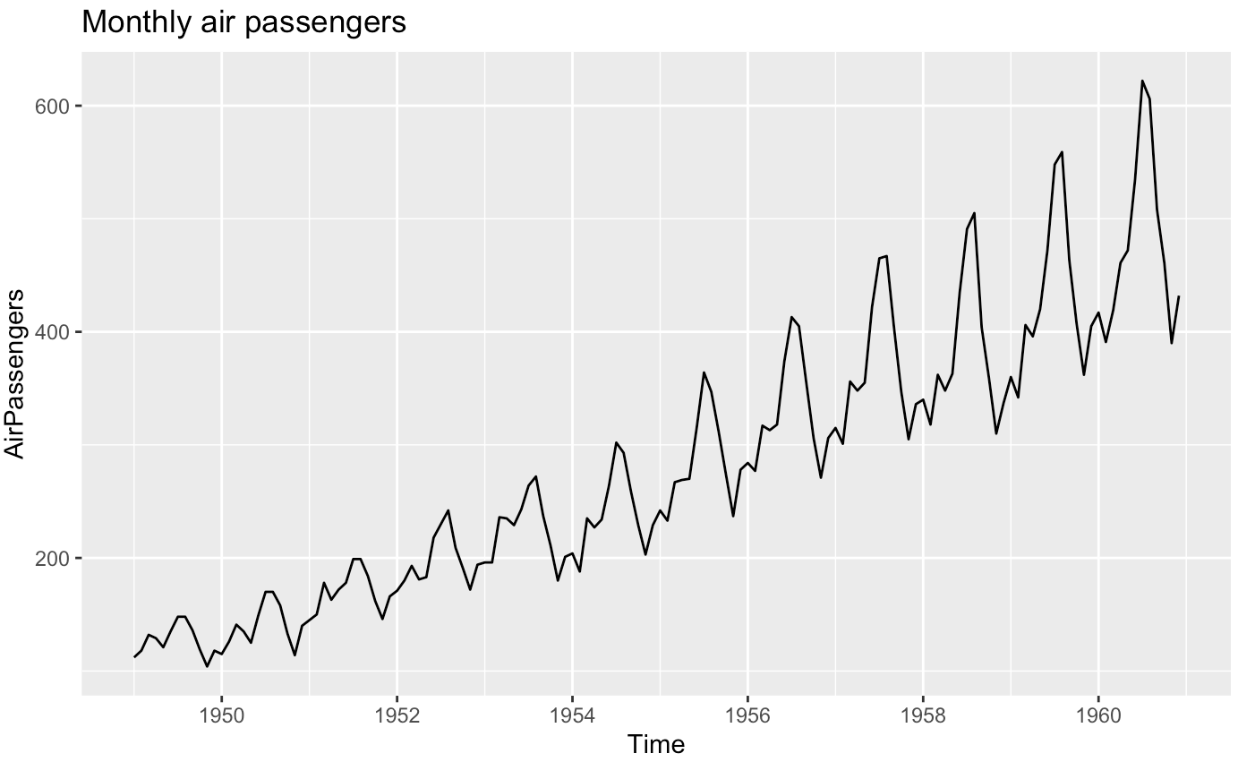 autoplot(AirPassengers, main ="Monthly air passengers" )