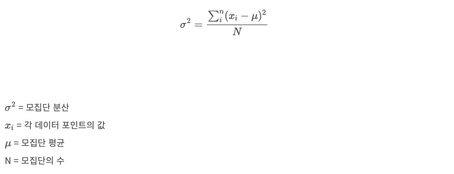 이 때, 명심해야할 것은 우리가 이 10명을 모집단으로 간주했다는 것인데요. 모집단의 분산과 표준편차를 구할 때와 표본집단(샘플)의 분산과 표준편차는 다르다는 것이 중요합니다.